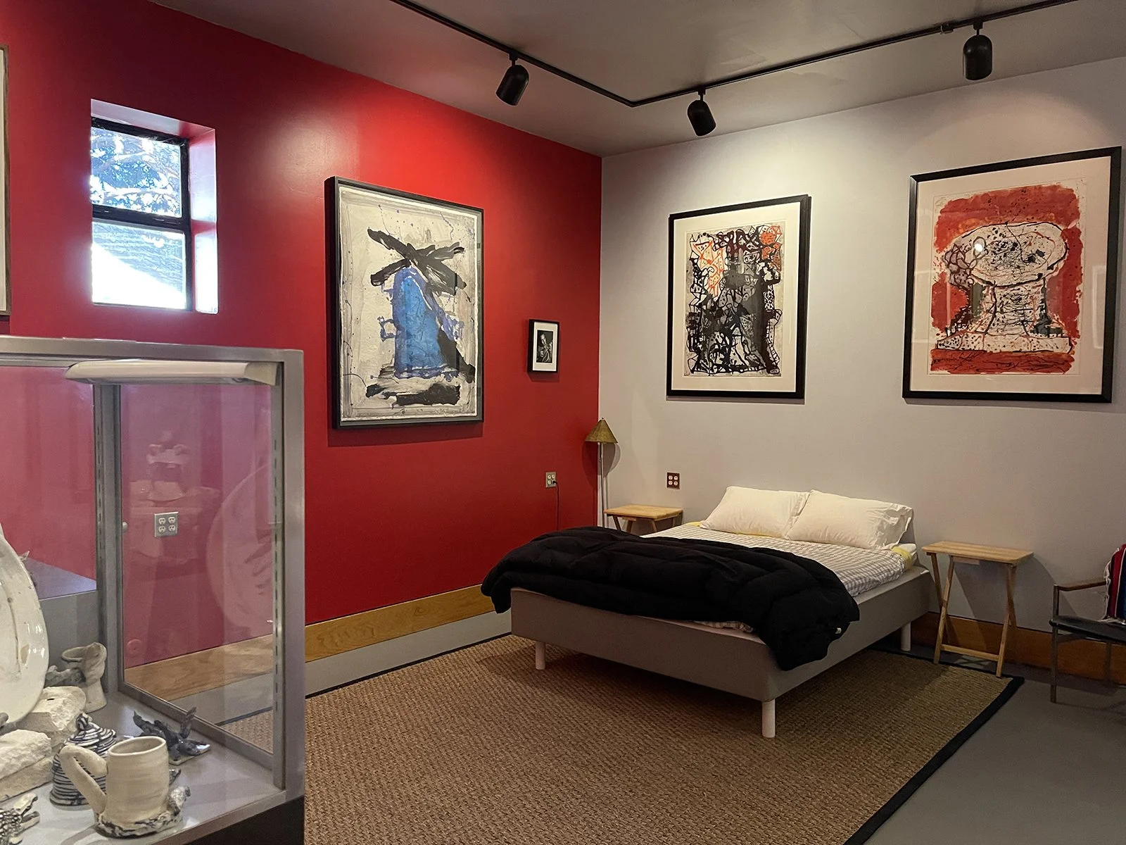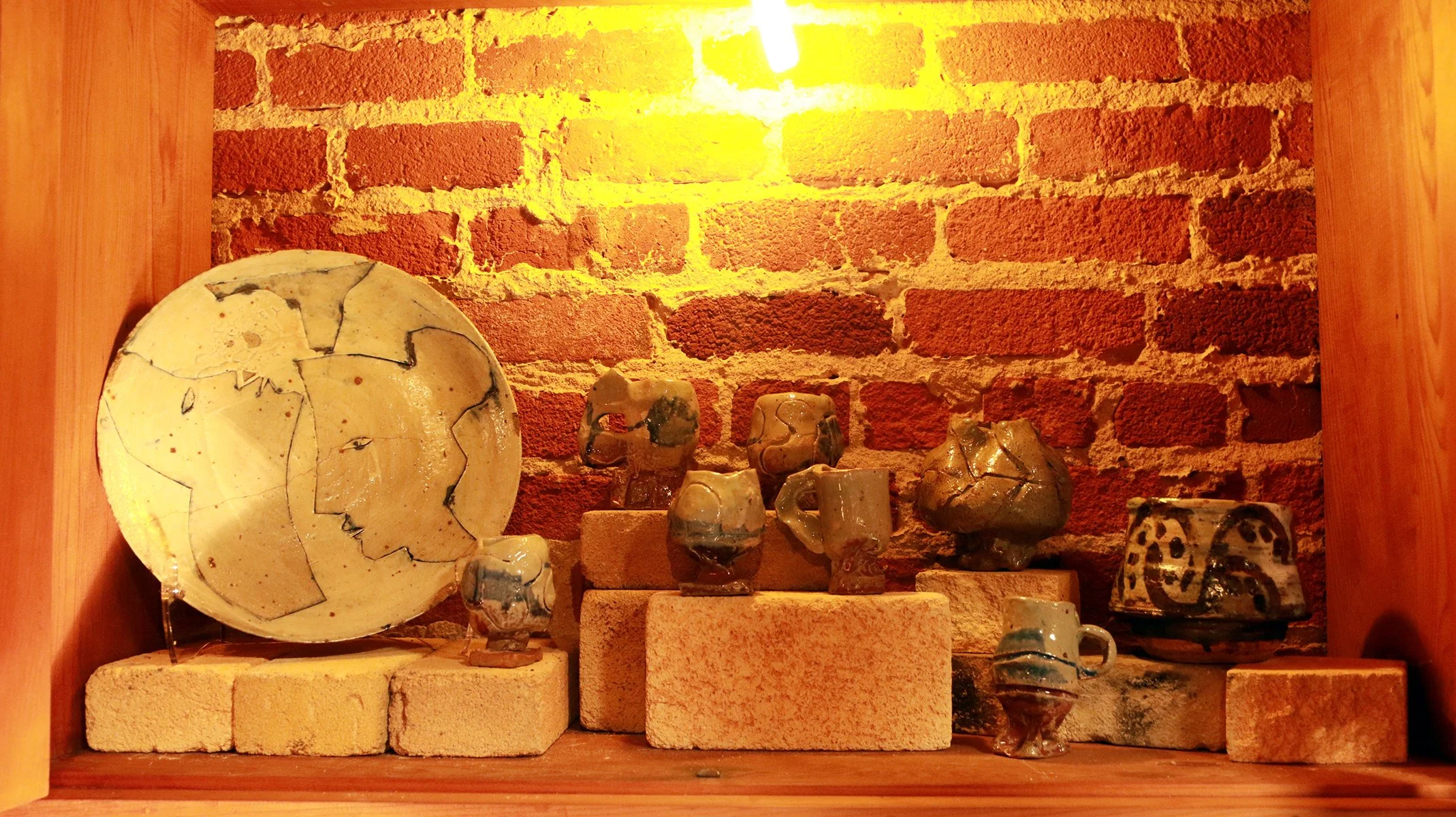 Sculpture by Jun Keneko (left) and works on paper by Peter Voulkos (right)
