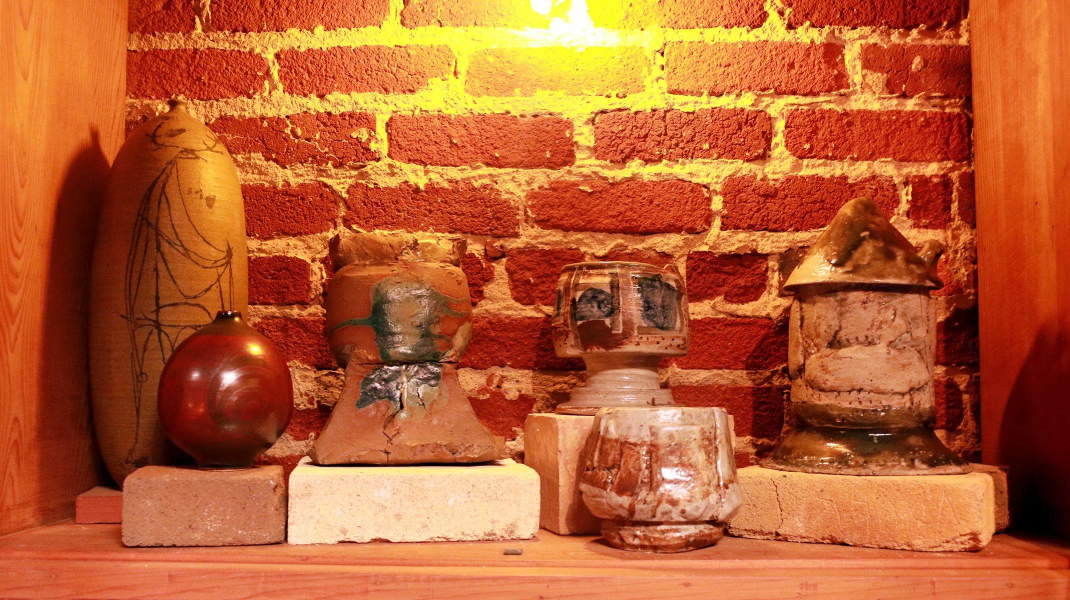 Sculpture by Goro Suzuki (left) with work by Peter Voulkos